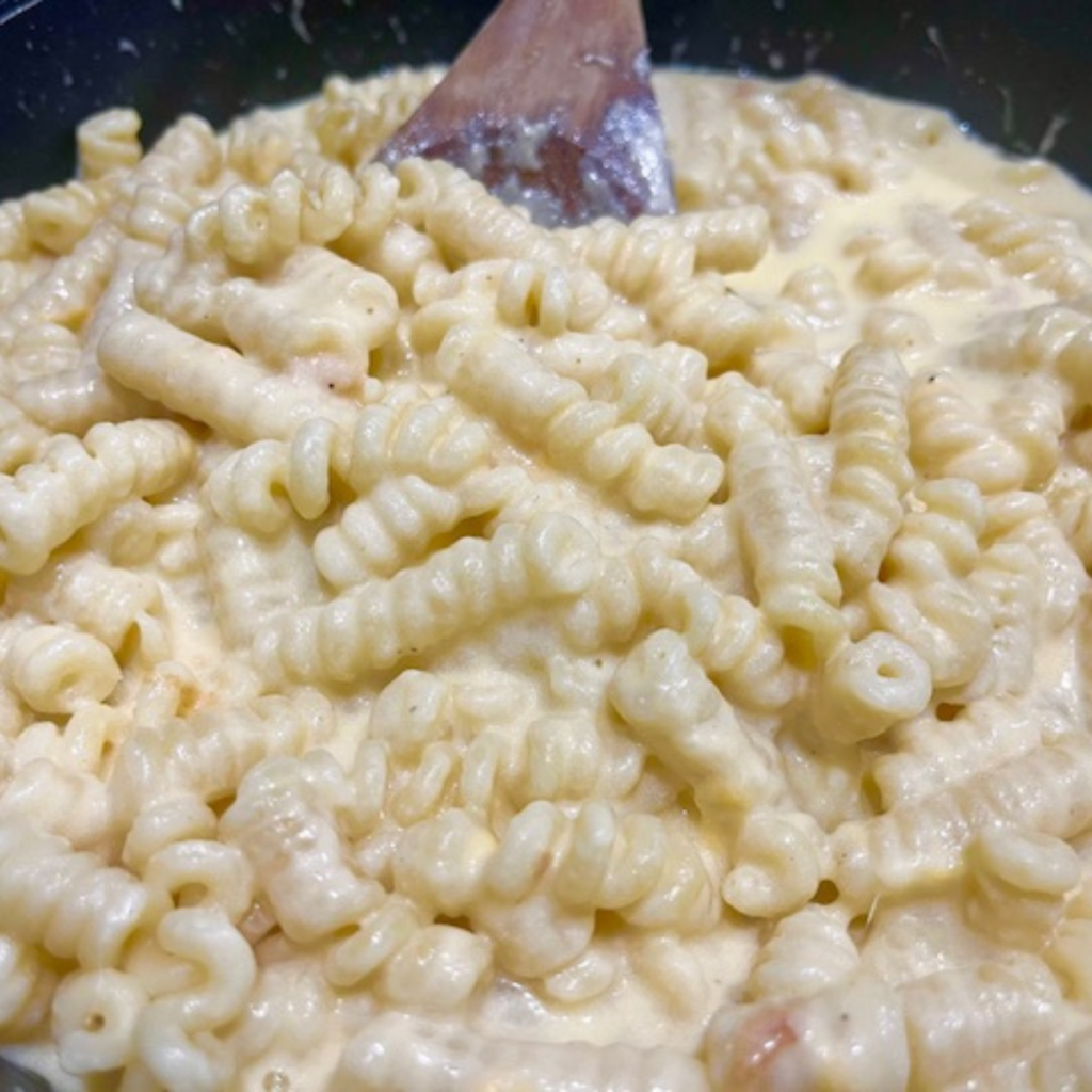 - Combine Pasta and SauceAdd the drained pasta to the cheese sauce and stir to coat the pasta evenly.
